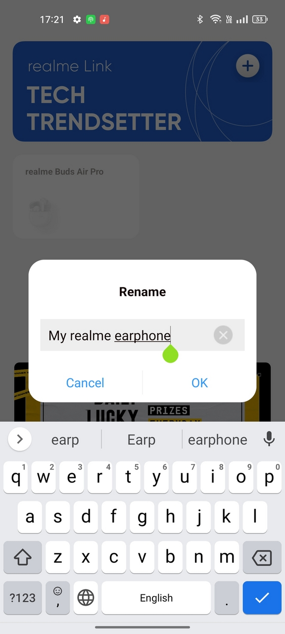 Press and hold a device on the main page to rename it. However, this operation can only modify the name displayed on the APP page, the Bluetooth name of the device cannot be modified, and the earphone still displays the original name in the Bluetooth list of the phone.
